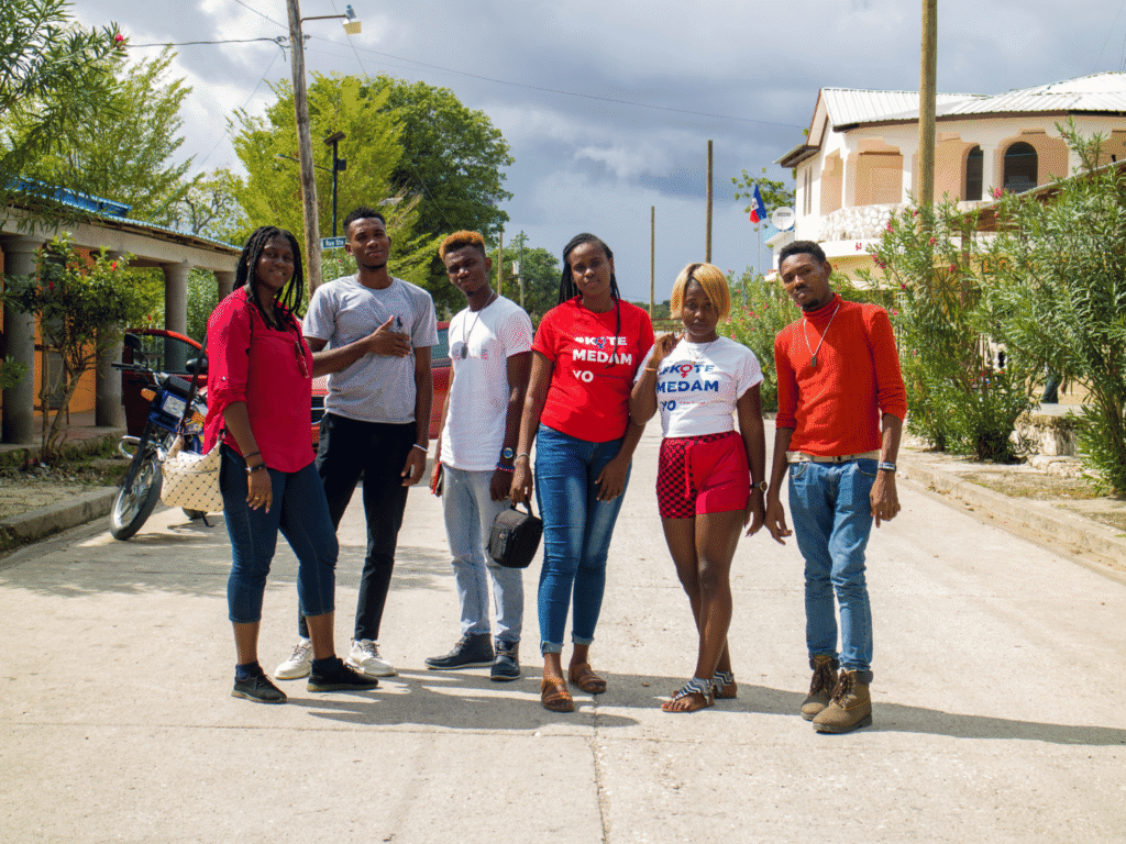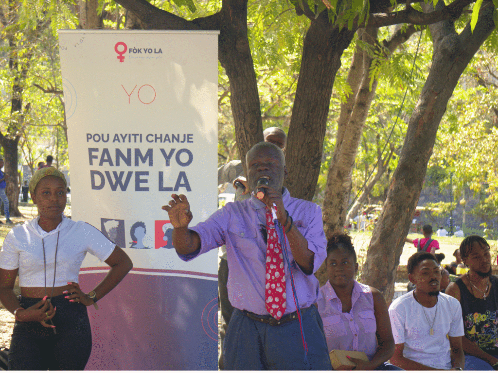 Du 25 novembre au 29 décembre 2021, en partenariat avec des organisations locales, le projet Nou La organise 10 happenings de rue dans les 10 départements du pays. Ces happenings se deroulent entre meeting de campagne et théâtre forum où le public est directement invité à se joindre aux acteurs.rices et ainsi acter le changement de comportement.